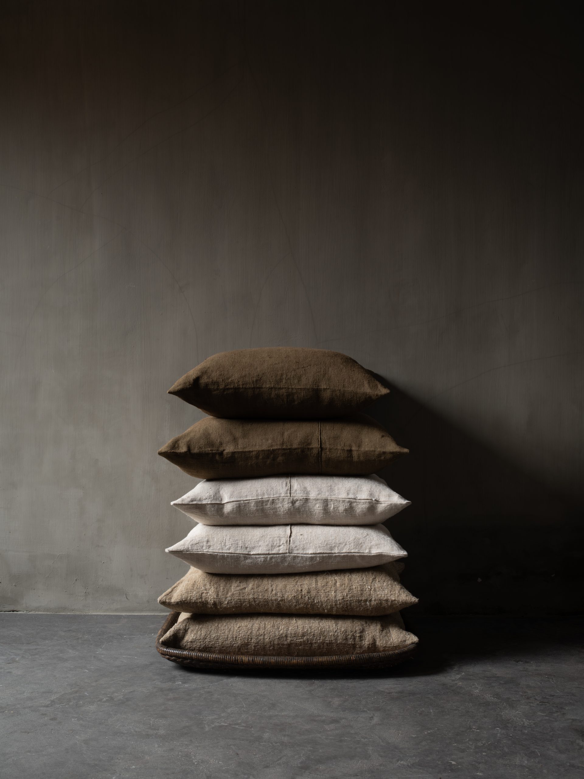 My aesthetic choice is to keep them natural to highlight the effects of the weaving and the inherent imperfections of the material and its aging, or to transform and dye them in organic and natural earthy colors.