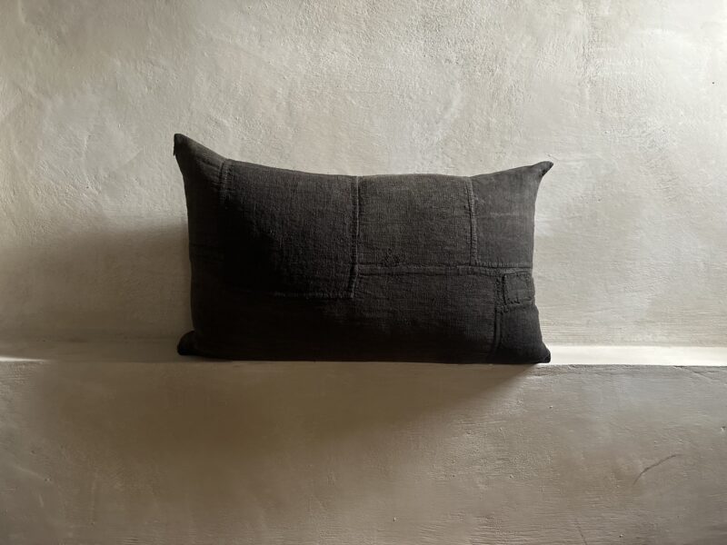 This cushion is made from an antique hand woven french “Sac de Meunier” (flour bag), made by hemp and dyed in an earthy dark cacao color. Those bag were used to carry wheat and flour in the 19th century and beginning of the 20th century, and used by farmers. This flour bag has been restored with hand stitched patches. Small irregularities and imperfections that this cushion might have is the result of its manual manufacturing process and part of its charm. Traces of usage are part of the natural characteristic of all our vintage textile and its history.